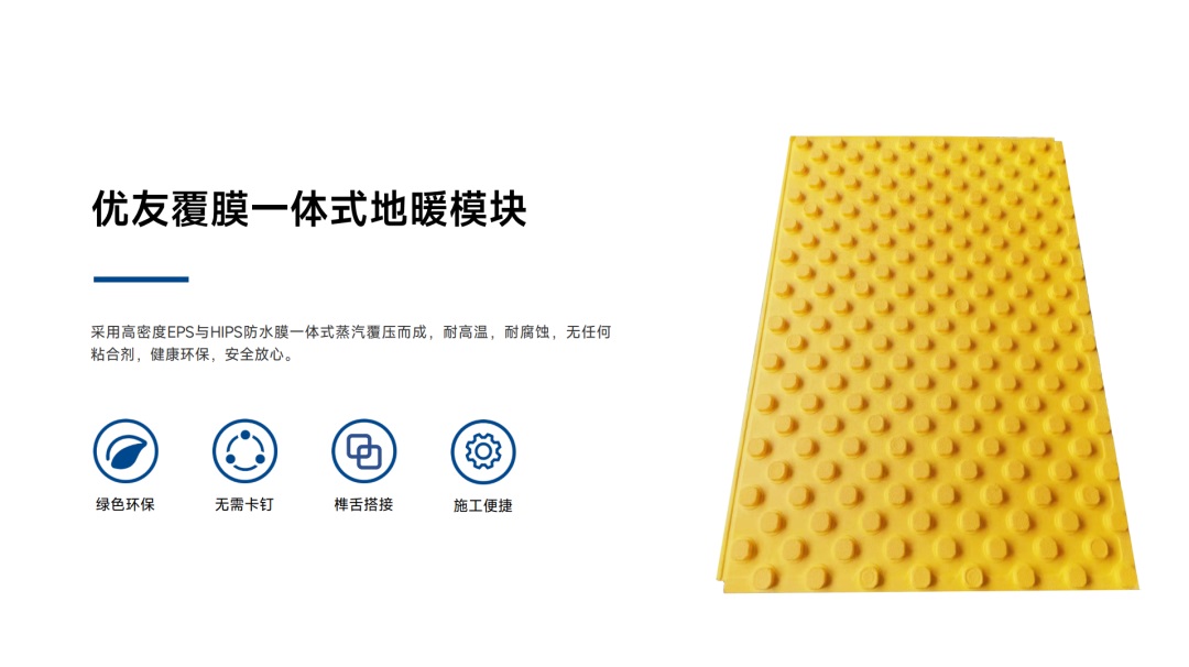 地暖基材:優(yōu)友覆膜一體式地暖模塊、邊界保溫條